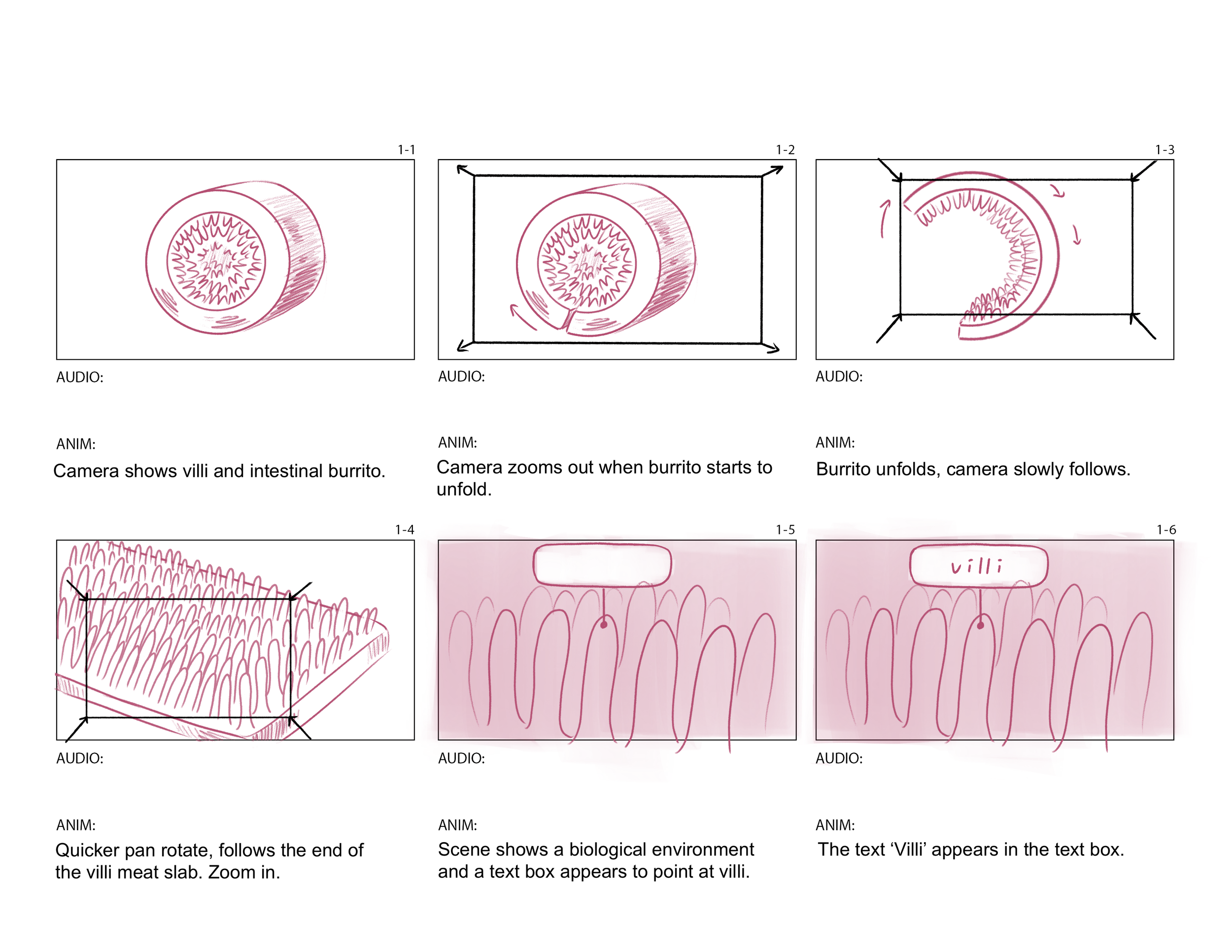 These storyboards show the journey from a macroscopic view of intestinal villi to the microanatomy of intestinal microvilli.